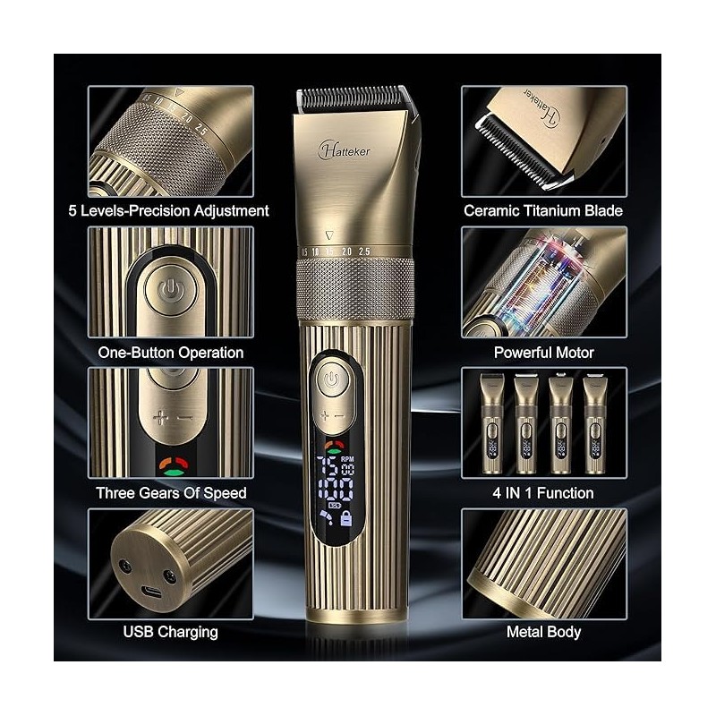 Hatteker男性用髭トリマー専門コードレスヘアカットカミソリ細部トリマー男性用防水4 in 1