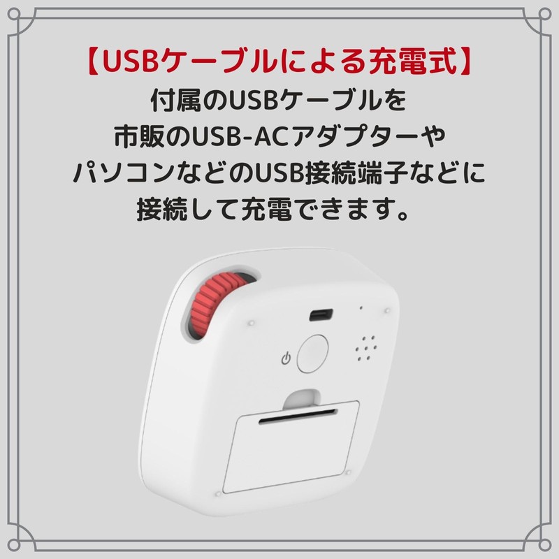 - Rechargeable via USB Cable: You can connect the included USB cable to a commercially available USB-AC adapter or USB connection port on a PC, etc