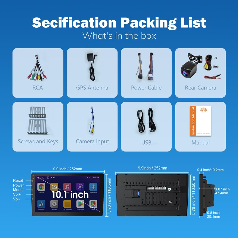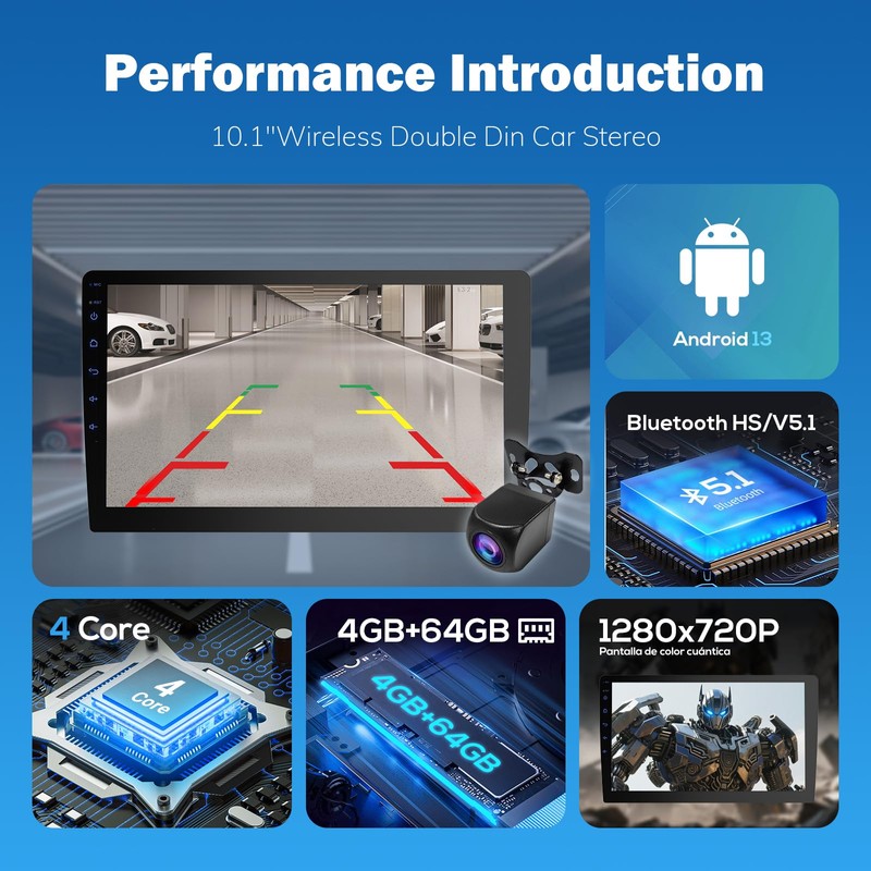 - 4GB RAM + 64GB ROM & 8-core Processor: Car radio is equipped with 4+64GB of storage, easily accommodating a large number of apps, music, and files to meet your diverse storage needs. The octa-core high-performance processor ensures smooth system operation, enabling fast multitasking without lag, and enhancing both operational and entertainment experiences