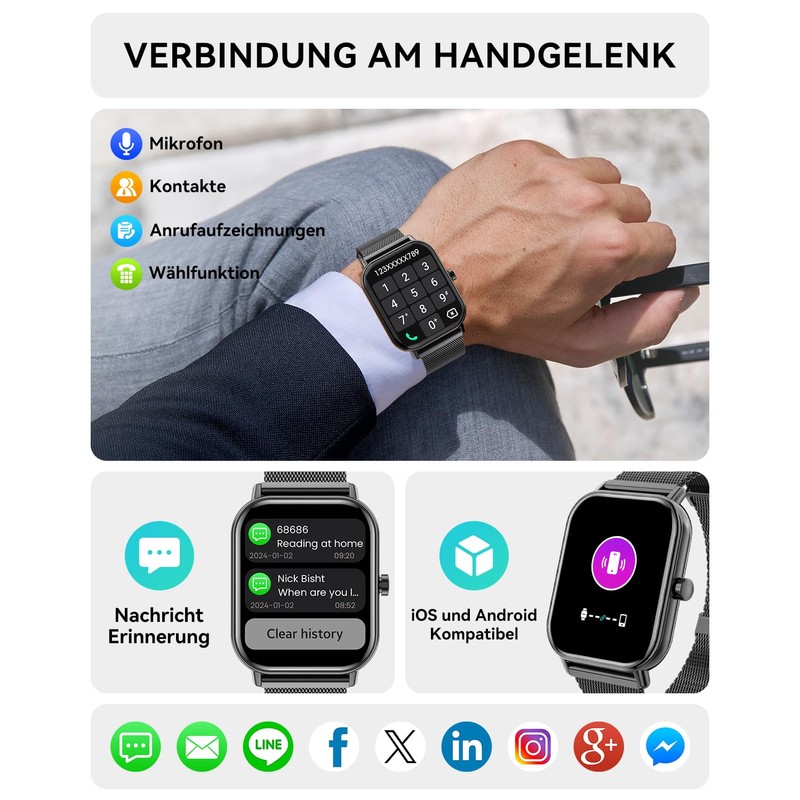 - Bluetooth call and message reminder: the Haulvean smart watch is equipped with a built-in microphone and HD speaker, so you can answer calls and interact with voice assistants directly from the smartwatch, so you can stay connected even during fitness, outdoor sports or other activities. Pair it with the "Gloryfit" app and you will not receive notifications from apps such as Facebook, Whatsapp, Instagram, SMS SMS and more verfit.