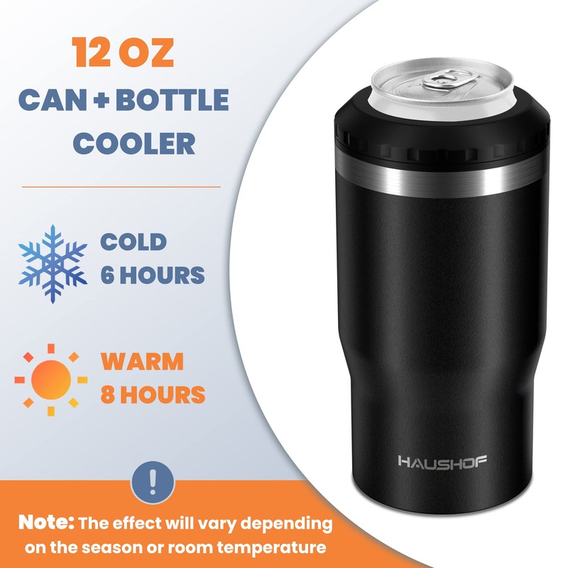 HAUSHOF Enfriador de latas de 12 onzas, aislante de latas de doble pared 4 en 1, se adapta a latas estándar de 12 onzas, lata delgada de 12 onzas, botella de cerveza de 12 onzas, acero inoxidable, ideal para camping, playa, picnic