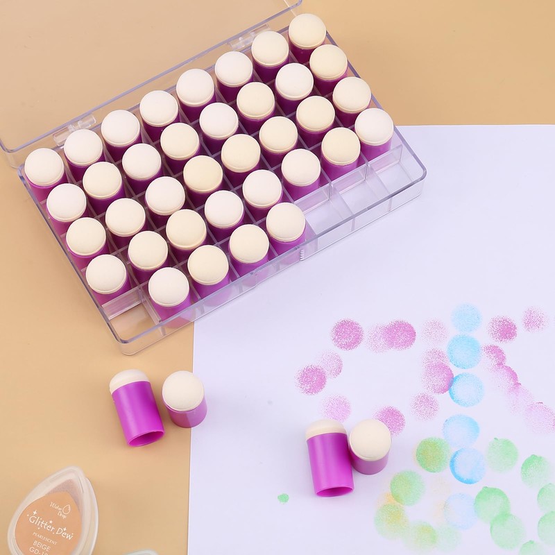 • ✅HUGELY VERSATILE CRAFTING TOOL: This sturdy and compact storage case contains 40 round finger daubers, perfect for mess-free crafting. Simply place a dauber on your fingertip to apply and blend your coloring mediums with precision.
