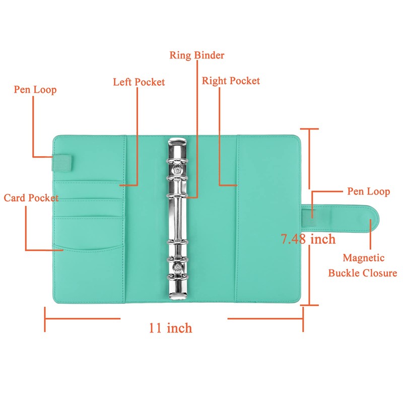 - This refillable A6 binder cover features stylish color and practical magnetic buckle, and there are 6 stainless steel binder rings, allowing you to add or remove planner sheets / insert pages flexibly