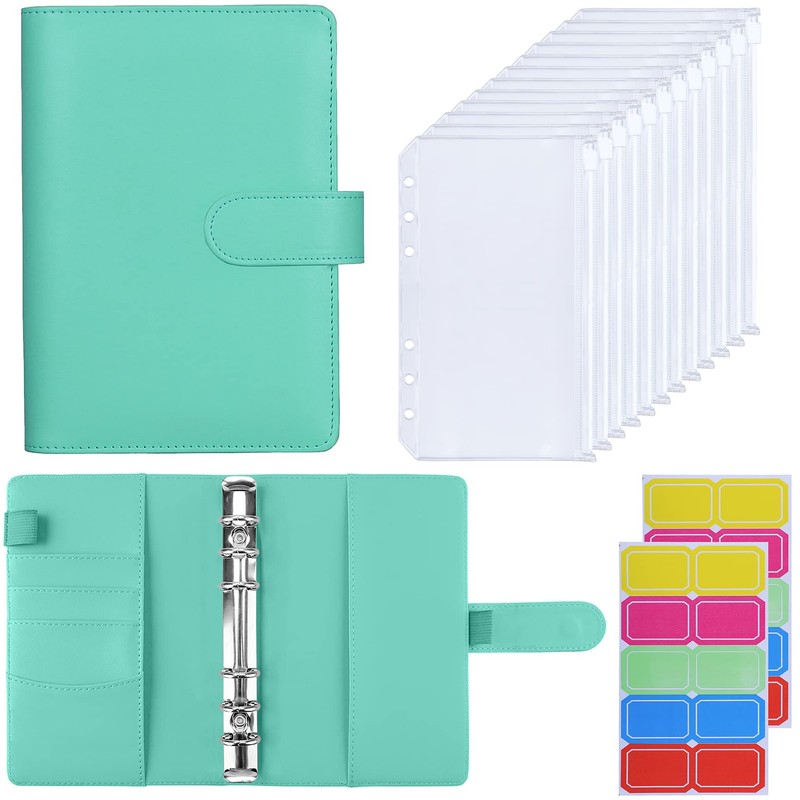 HAUTOCO A6 Budget Binder with Zipper Envelopes for Money Organiser, Budget Planner with Cash Envelopes, Money Saving Wallet for Budgeting, Cash Stuffing Wallet Binder with Binder Pockets, Mint Green