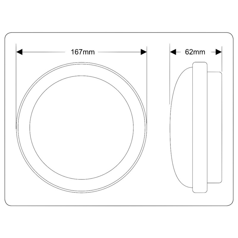 - Dimensions: diameter 167 x 62 mm