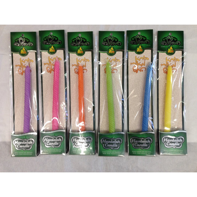 - 6 pack includes orange, pink, green, blue, red and purple braided havdalla candles set