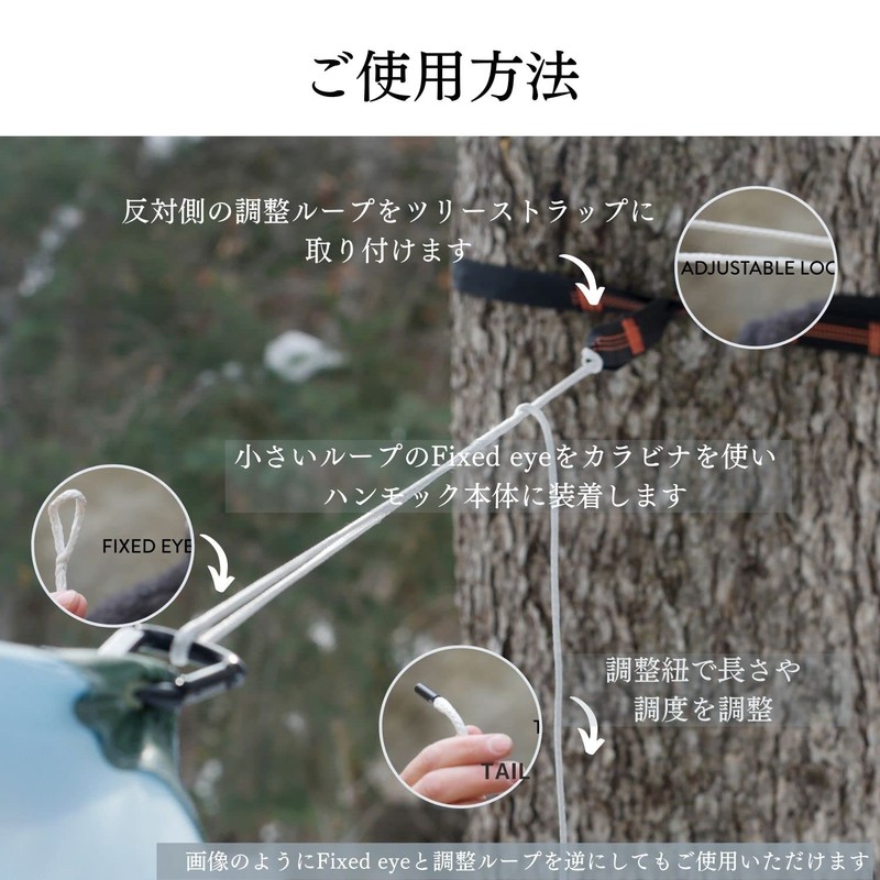 (Woopy ring allows you to adjust the angle and height without removing the hammock after setup.