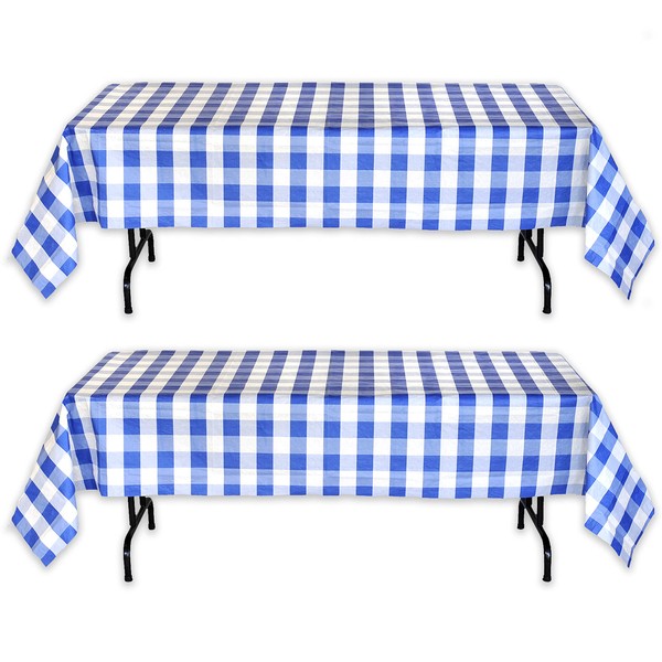 Havercamp Blue and White Plaid Table Cover |2 Pack | 54" x 108" | Classic Plaid Collection | Great for Picnic, Barbecue, Cookout, Lumberjack Theme, Playground