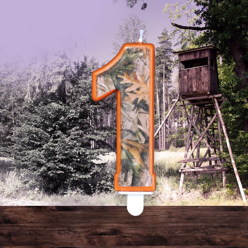 You can decorate a tasty cake or a delightfully large cupcake with this candle. It is made from an orange-colored wax that includes a wick and a print of the next camo pattern. This candle is shaped as the number "1" and with a height of 3". Its slow burn makes it ideal to reuse for future celebrations. All you need to do is to wash it thoroughly and store it properly.