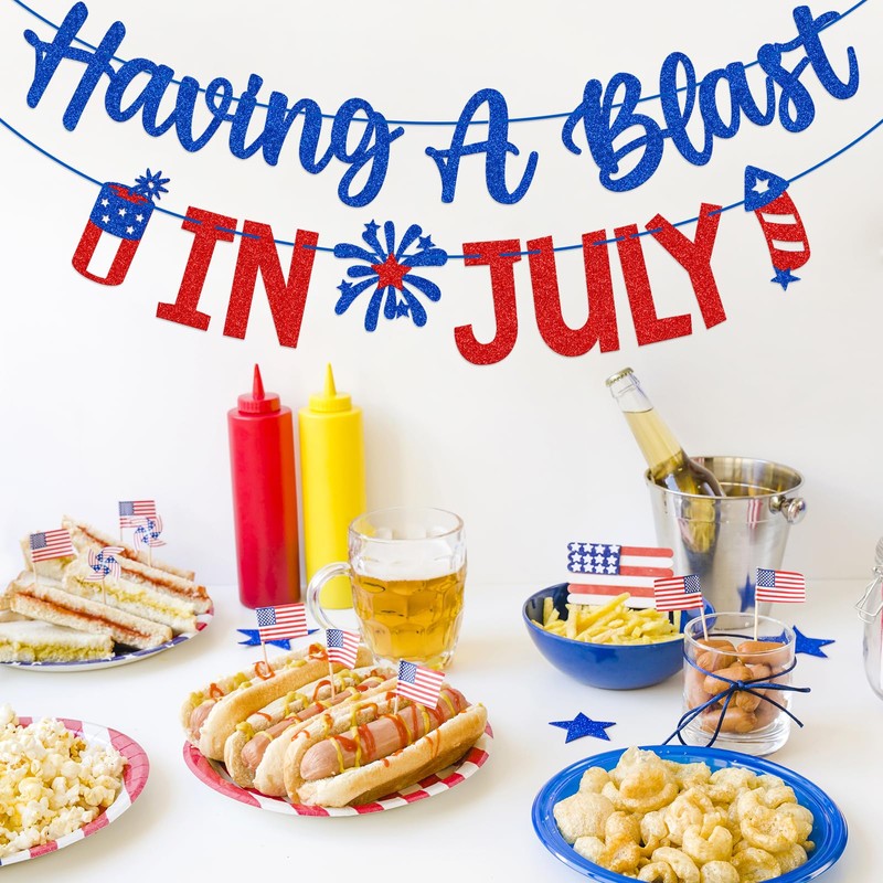Having A Blast In July Banner, Fireworks 4th of July Decorations, Independenc...
