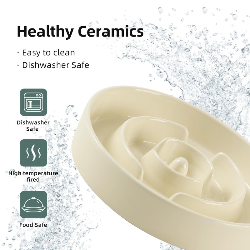 • Stable and Anti-Slip: Ceramic bowl is heavy and stable, and the anti-slip strip at the bowl's bottom can prevent bowl from sliding while your pet eating.