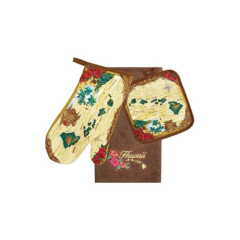 Hawaii 3 Piece Kitchen Set Towel & Potholder & Oven Mitt Island Chain