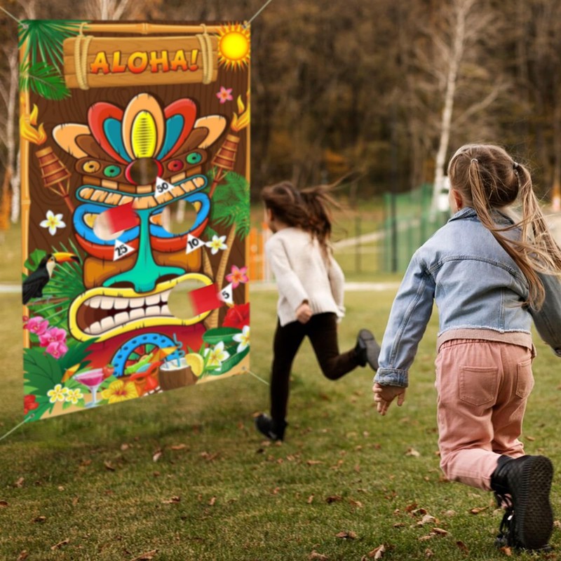 - Unique Design: The Tiki Bean Bag Toss Banner features a colourful, eye-catching design that incorporates Hawaiian and tropical elements such as tiki totems, hibiscus flowers, summer beverages and ALOHA lettering. The unique Aloha Bean Bag Toss game will create a fun and energetic atmosphere and add a festive touch to your party.