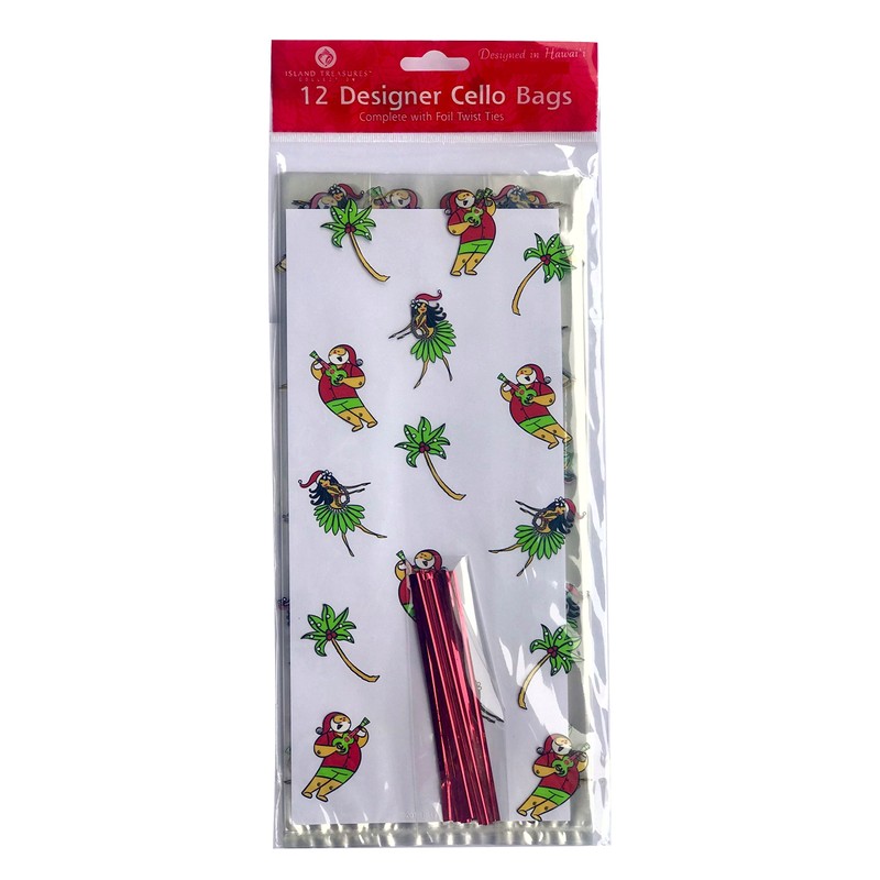 Hawaiian Designer Cello Party Favor Bags (Santa's Island Hula Honey, 4 13/16"...