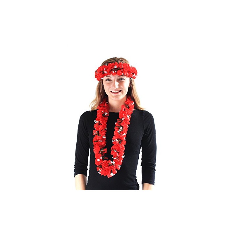 Hawaiian Luau Party Kapiolani Tuberose Fabric Flower Matching Lei and Head band Haku Red