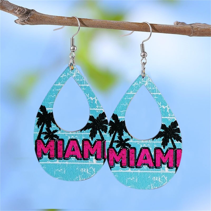 Hawaiian Summer Earrings PU Leather Beach Earrings for Women Lightweight Tropical Coconut Palm Tree Teardrop Holiday Drop Dangle Earrings Summer Vocation Hawaii Jewelry Gifts (Blue Wood Coconut Tree)