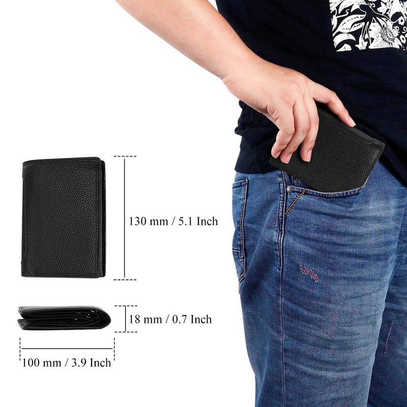 - Triple Fold Wallet for Men: 5.1"*4.1"*0.6"(13cm*10.5cm*1.5cm) in the folded model, 7.5"*5.1"*0.31"(19cm*130cm*0.8cm) when open