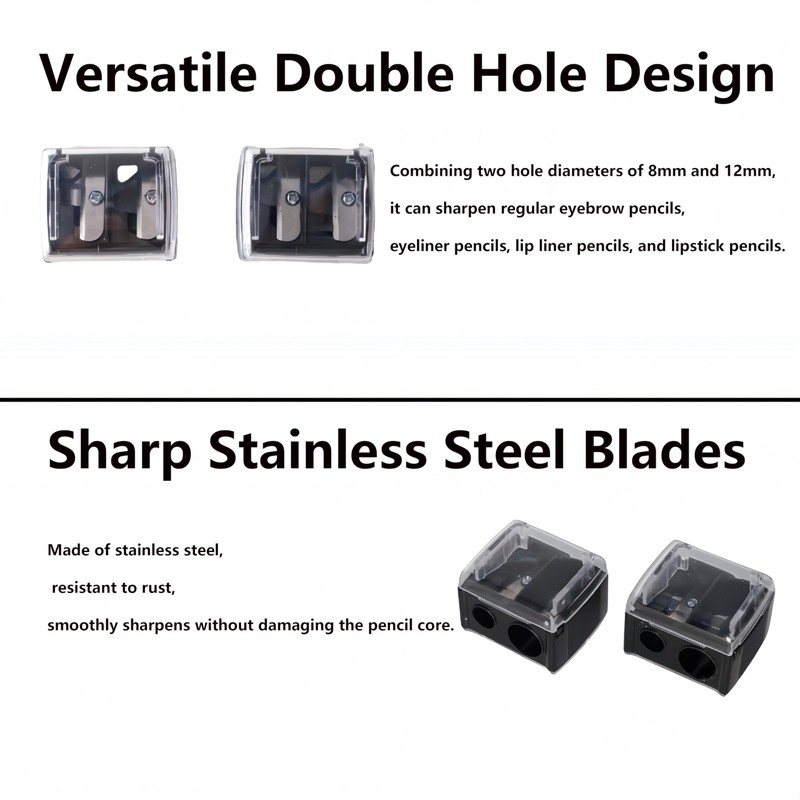 - Ergonomisches Design: Ausgestattet mit zwei Löchern in verschiedenen Größen, ermöglicht dieser Anspitzer die Auswahl des richtigen Lochs für jeden Bleistift. Dies garantiert ein präzises und gleichmäßiges Schärfen und hilft Ihnen, die perfekte Form für ein makelloses Auftragen von Make-up zu erhalten.