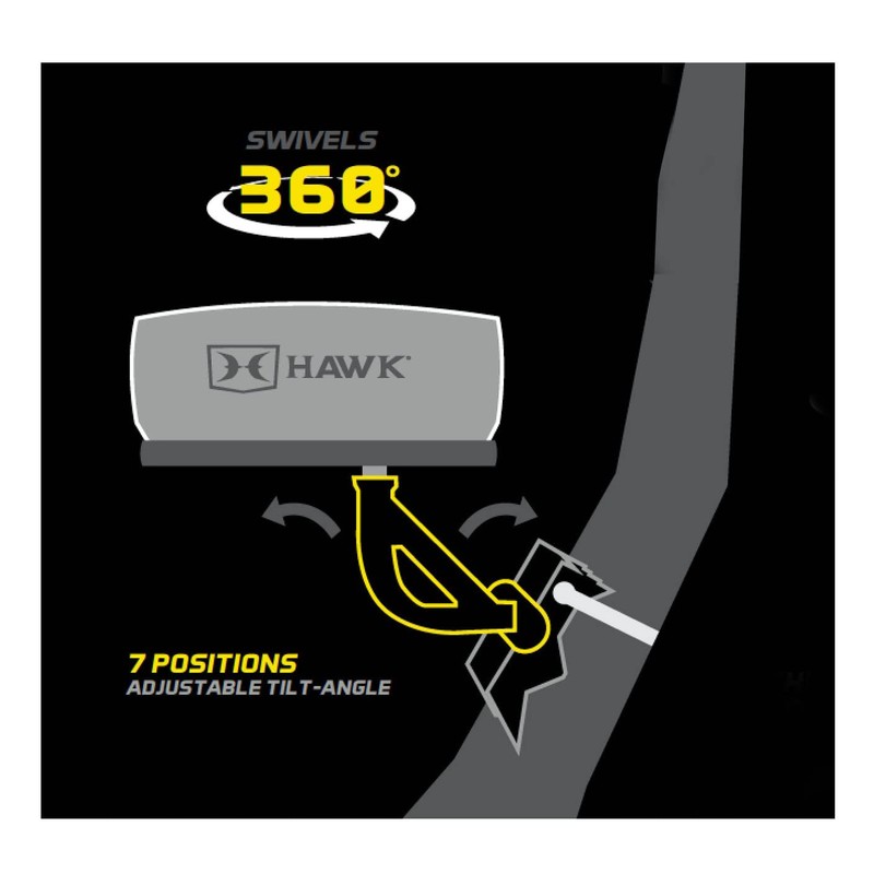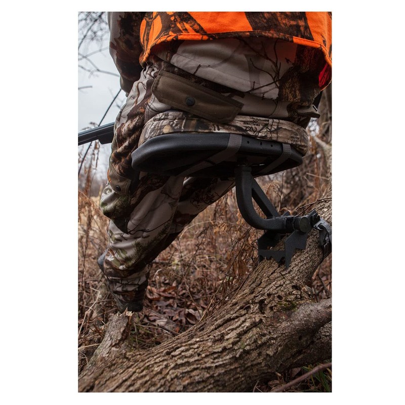 GET LEVEL ON THE GROUND The Any-Angle Tree Seat design allows comfortable use for almost any angle tree or tree base. Multi-angle adjustment is quick and simple and the Tree Digger teeth with ratchet system provides a solid perch. 360 degree Swivel combined with HAWK’s layered Memory Foam cushion results in a new comfortable way to effectively hunt from ground level.For ground use only.7-TILT ANGLE ADJUSTMENTS Get Level on Crooked Tree Bases360º SWIVEL SEAT Stealthy Full Range of Motion for Surrounding Shots MEMORY FOAM LAYERED SEAT Ultra-Comfortable, Conforms to Body to Relive Pressure PointsNO SQUEAK, NO NOISE - QUIET USE Silent-Overmolded Attachment Hook & Premium Teflon Washers Prevent NoiseRATCHET STRAP TREE ATTACHMENT Rock-Solid Stability