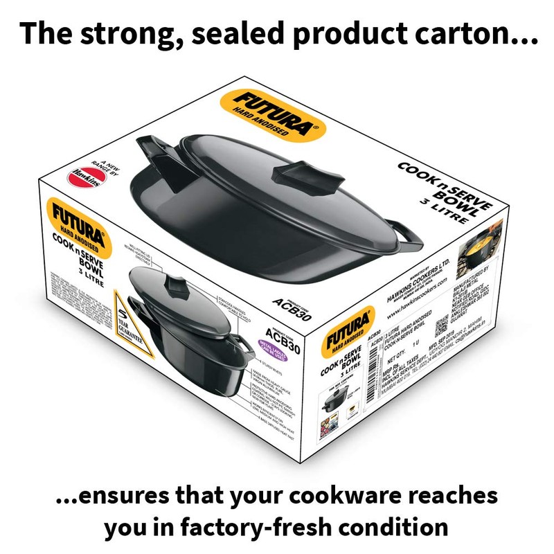 Hawkins/Futura 3 Liter Hard Anodized Non-Corroding Cook n Serve Stewpot/Bowl With Well Fitting Lid To Retain Heat/Steam Effectively and A Stay Cool Handle.