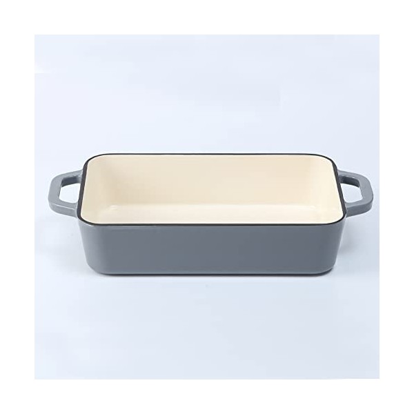HAWOK Enameled Cast Iron Rectangle Lasagna/ Roasting Pan Gray…