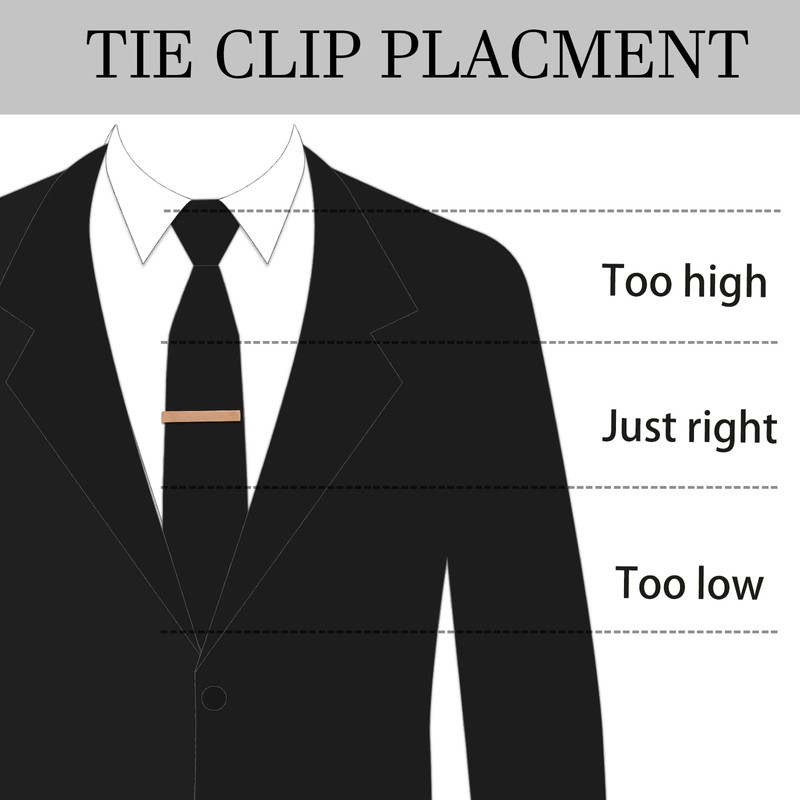Wear It Right:Clips Should be Worn Two-thirds Down the Necktie Between the 3rd or 4th Button.