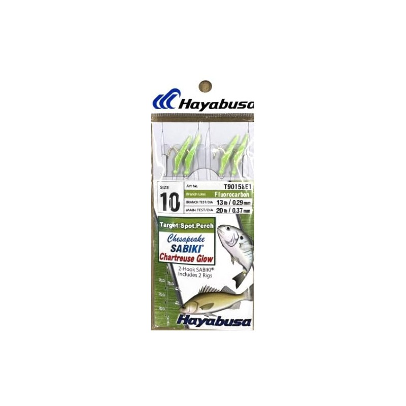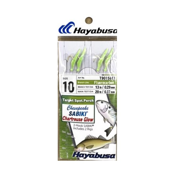 Hayabusa Chesapeake Sabiki Rig 2-Hook 2 rigs Size: 10 - Chartreuse Glow -