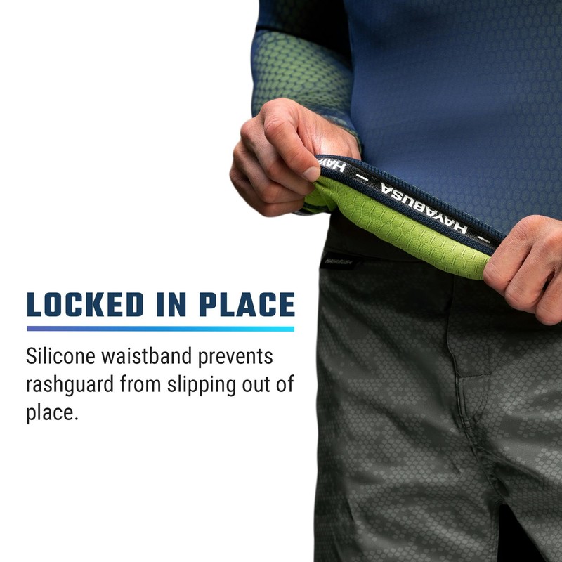 - SILICONE ANIT-SLIP WAIST BAND: Secures your rash guard at the waist preventing it from riding up your back