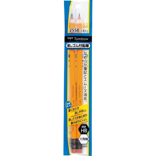トンボ鉛筆 消しゴム付鉛筆HB 2558 ACB-260 キャップ付 2本入