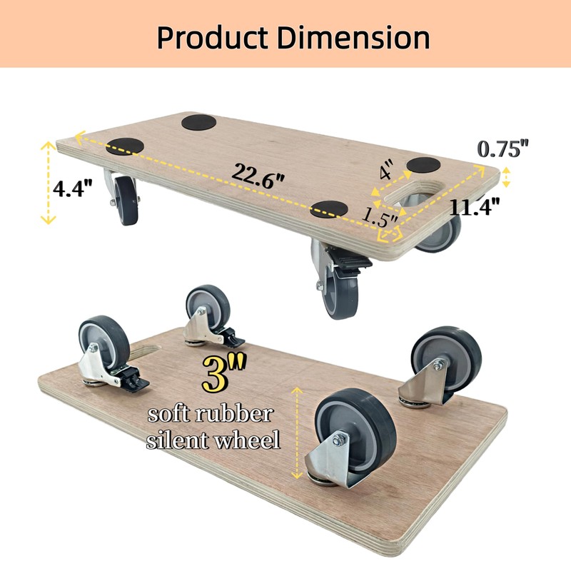 - Heavy-Duty Construction: Made of 11 layers of plywood, each pair of dollies can handle up to 2200-pound static load and 1100-pound dynamic load, making it ideal for moving heavy objects with ease