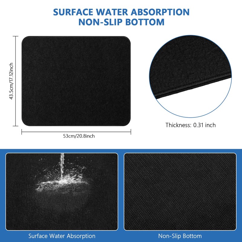 - ENVIRONMENTALLY FRIENDLY AND REUSABLE: Our mat's bottom is made of natural rubber and the surface absorbent layer is made of reusable material, and the product has passed the SGS certification test
