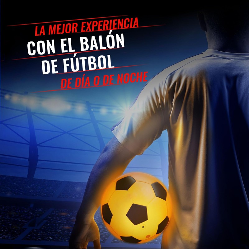 - 【ILUMINE EL CAMPO】:Observe cómo se ilumina el balón de fútbol con cada patada, haciendo que su juego cobre vida con vibrantes luces LED que se apagan automáticamente después del juego. Lleva tu juego al siguiente nivel, incluso en las noches más oscuras: la nueva forma de jugar cuando se pone el sol.