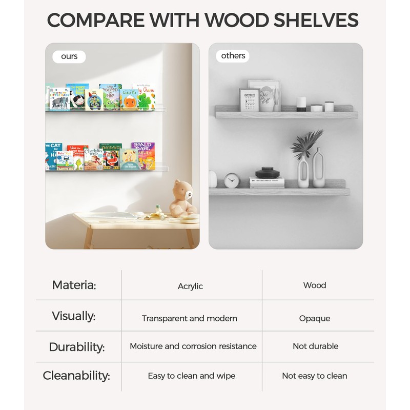 - Stylish for Your Home Library: HBlife acrylic floating shelves allow you to claim wall space that typically goes unused and turn it into an artful, savvy storage solution for your personal library.