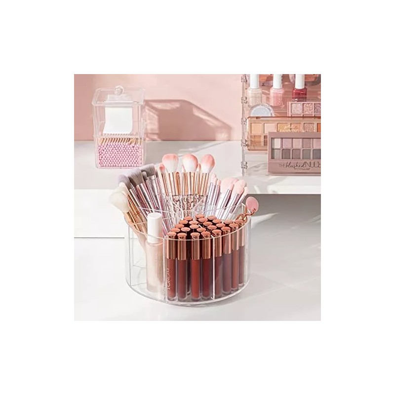MULTIUSOS: el organizador de maquillaje con plataforma giratoria es perfecto para guardar maquillaje, brochas de maquillaje, cuidado de la piel y otros productos de belleza en el tocador, el baño, la mesa y más.