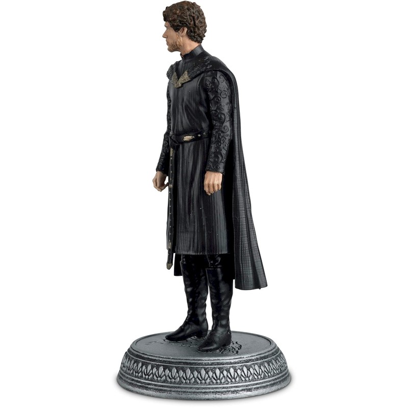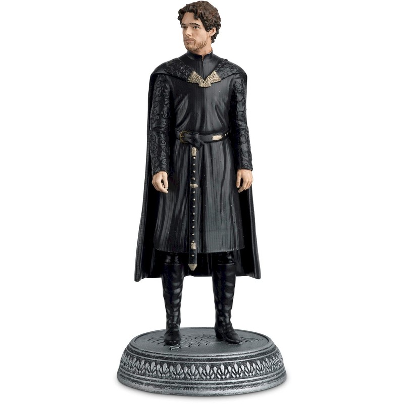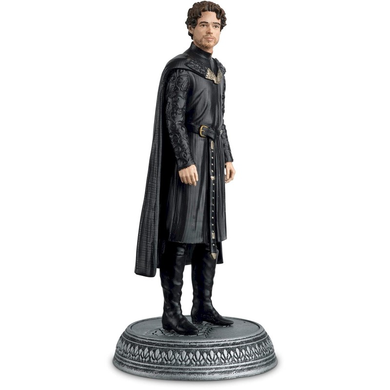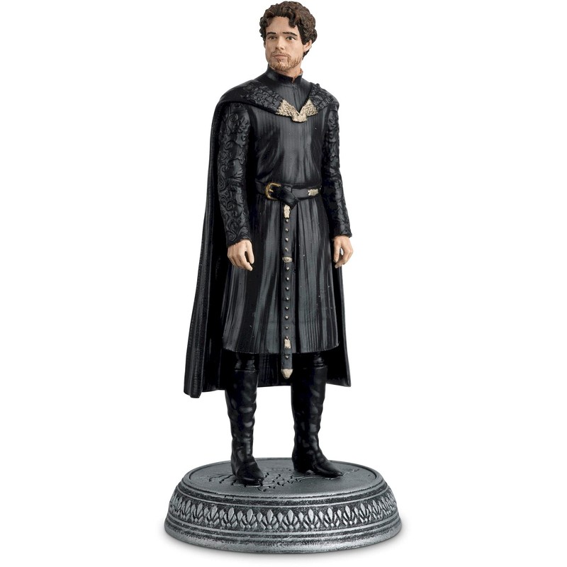 The hand-painted Robb Stark figurine depicts Richard Madden as Robb Stark in the black tunic and cape that he wore at the wedding of Edmure Tully and Roslin Frey in season 3, episode 9, ‘The Rains of Castamere’, better known as the Red Wedding.