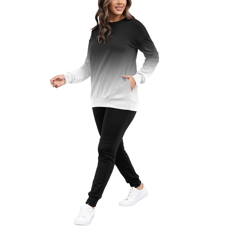 HBQ Two Piece Outfits For Women Casual Long Sleeve Sweatsuits Jogger Tracksuits Lounge Sets With Pockets-Gradient-XL