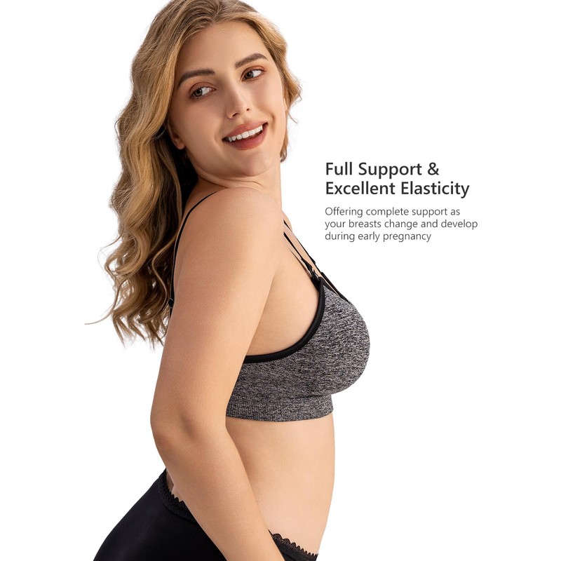 - COMFORT TO WEAR - It is super comfortable to wear and doesn't look like a classic nursing bra. The design resembles a sports bra. It has padding in the inside pocket that can be removed as desired. No oppression for female breast. Easy to open when mother wants to breastfeed.
