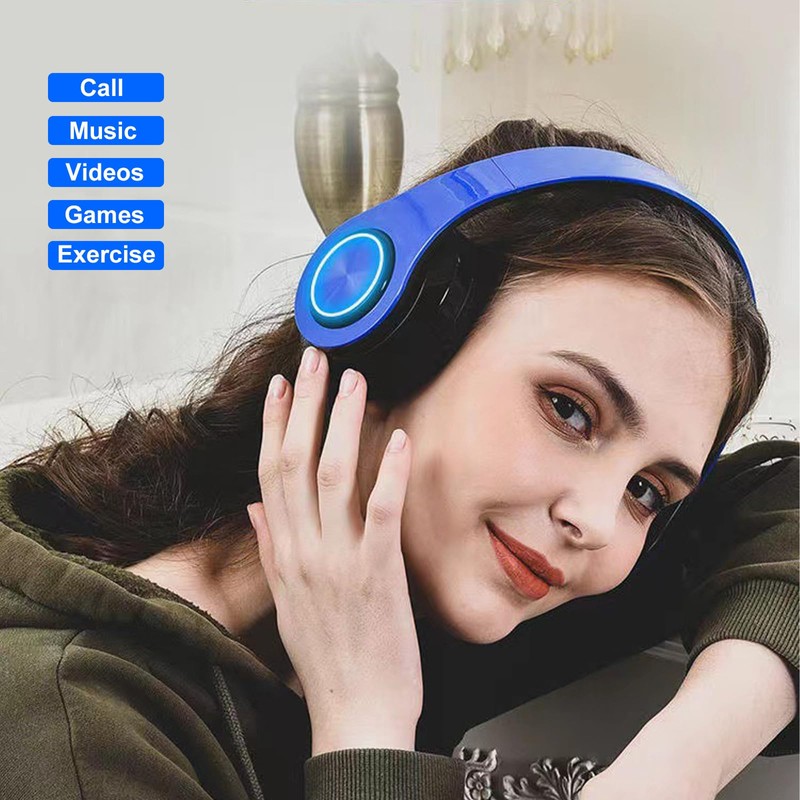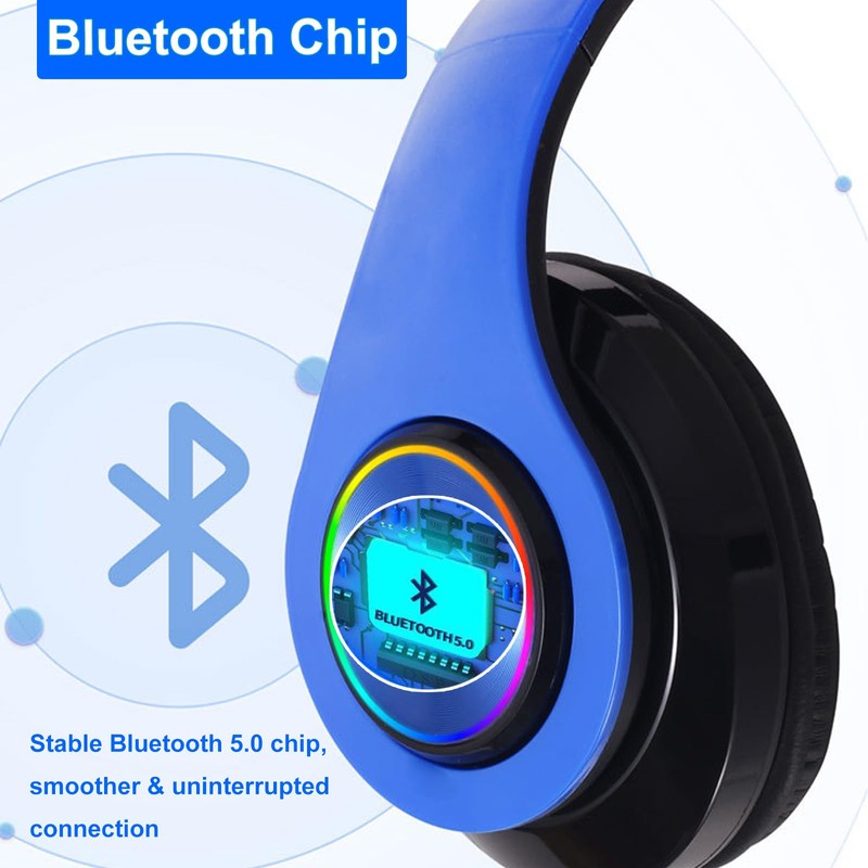 - 【Colorful LED Light Design】wireless bluetooth headphone is designed with colorful LED light, The LED light is installed on both sides of the headphones which changes with the rhythm of the music, making the music you listen more dynamic and unique. Stylish design elements are sure to bring joy and excitement to your daily life.