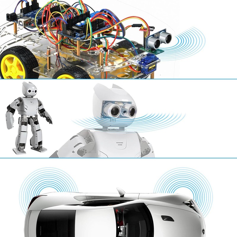 - The HC-SR04 ultrasonic sensor can send eight 40 kHz and detect whether there is any pulse signal back.If it back, a high level signal will be outputed by IO, and the duration of the signal is the time from sending ultrasonic to returning