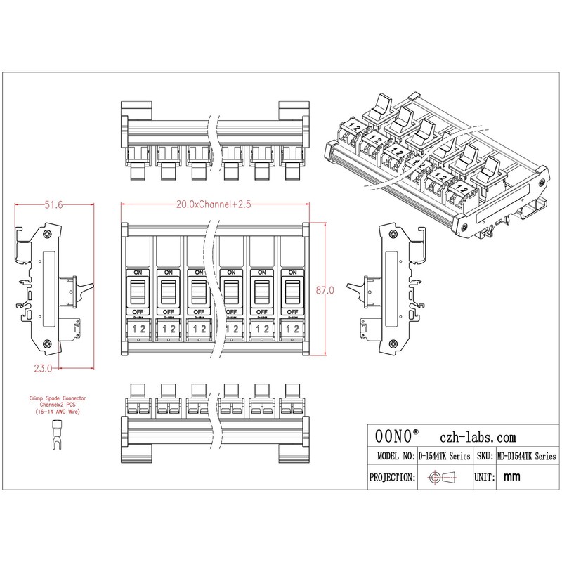 - Terminals pitch 7.62mm/0.3", removable cover, Metric M3 screw. With vinyl-insulated spade connectors, can support cable 16 - 14AWG / conductor cross section 1.5 - 2.5 square millimeters.