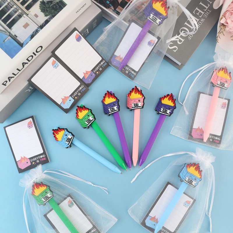 Featuring fun dumpster fire design, these sticky notes and pens add a playful touch and serve as a daily reminder of optimism and lightheartedness.