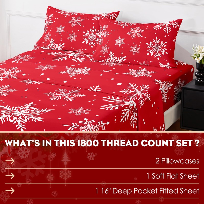 - 【Ultra Soft Brushed Christmas Bed Sheets 】 Our Christmas sheet sets is made with premium 1800 Thread Count 90GSM Brushed Microfiber fabric that provides exceptional softness and comfort for a restful night's sleep.