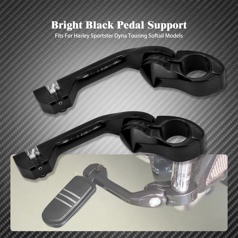 HDBUBALUS Black 1-1/4" Engine Guard Highway Long Angled Mount Foot Pegs For Harley Softail