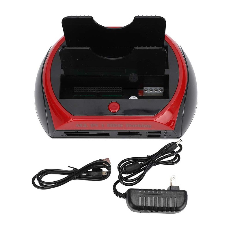 Specifications:Product Name:2.5/3.5 SATA IDE HDD Docking Station Accessories: Mini USB Cable Input: 100-240V, 50/60Hz, 1.0A Output: 12.0V-2000mA; 5.0V-3500mA Plug Standard:US Color: Black and Red Size: 18 x 11 x 10cm/7.09 * 4.09 33 x 3 .94 in Package Weight: 610g