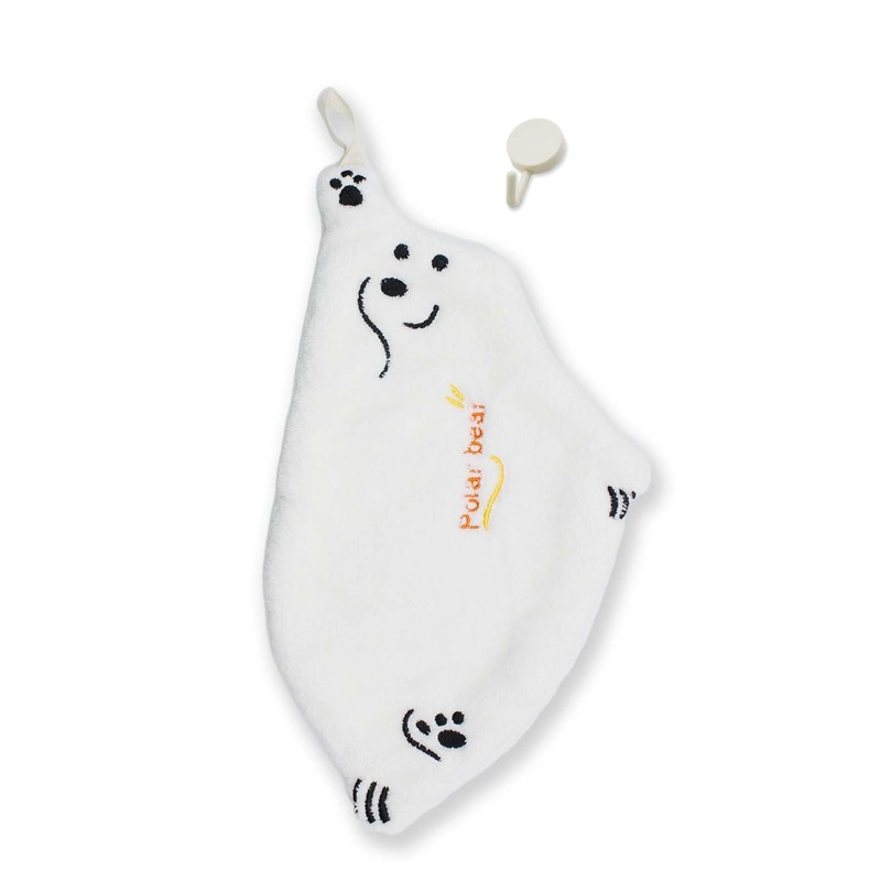 Towel with drawstring for hanging on a hook. Also recommended as a towel for children to use in nursery. Coral fleece fabric is very pleasant to the touch. A hook with double sided tape is also included for attaching to the wall.
