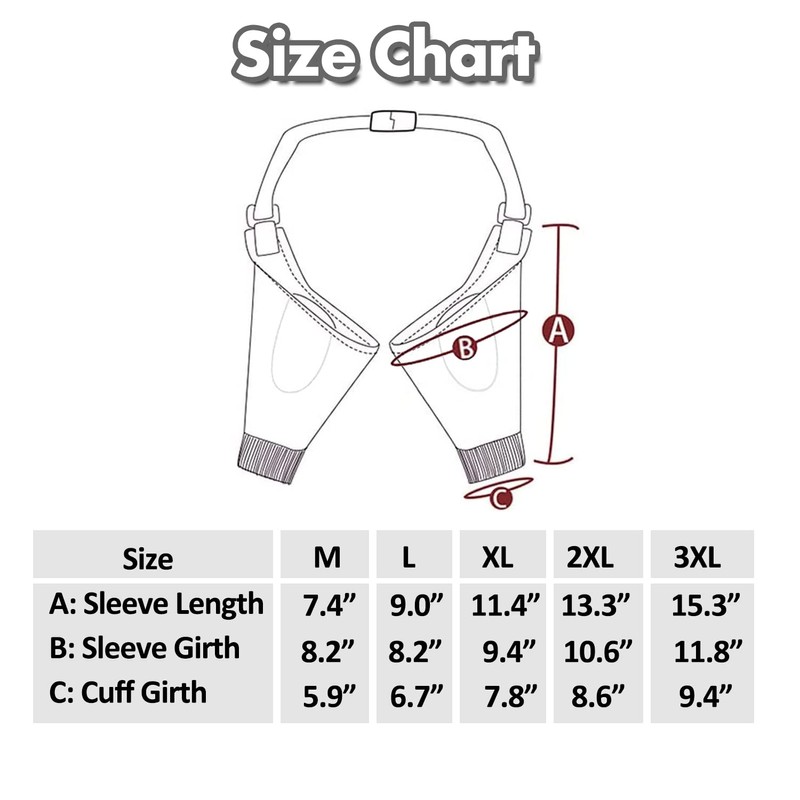 XL: Sleeve Length 11.4 inch, Knee Girth 9.4 inch, Cuff Girth 7.8 inch.