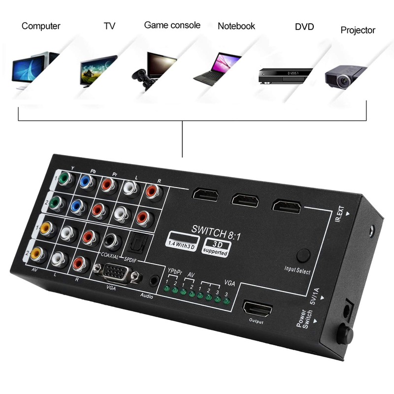 - 【High Stability】8 inputs and 1 output multi‑function video/audio switcher. No image or color distortion. Very practical and useful.