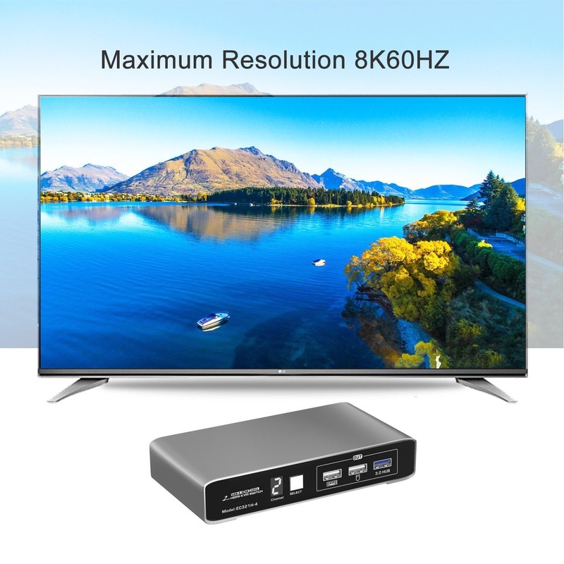 HDMI KVM Switch for 2 Computers 1 HDMI Monitor USB 3.0 8K@60Hz 4K144Hz with Remote