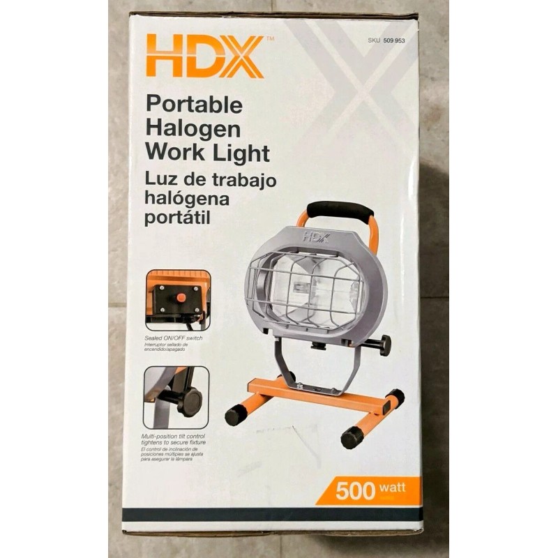 HDX 500-Watt Portable Halogen Work Light Mod. 509953. Condition is New.