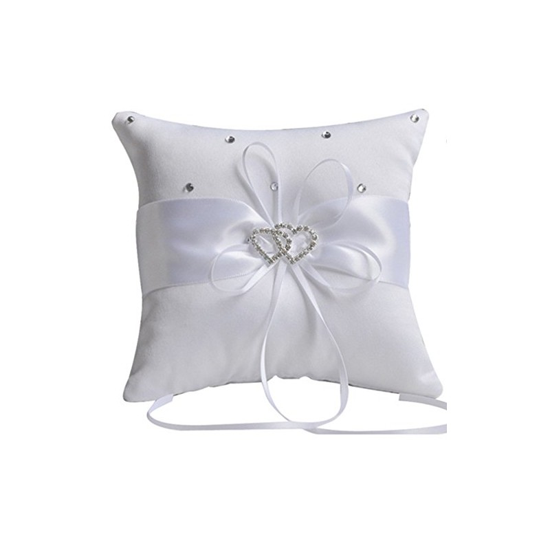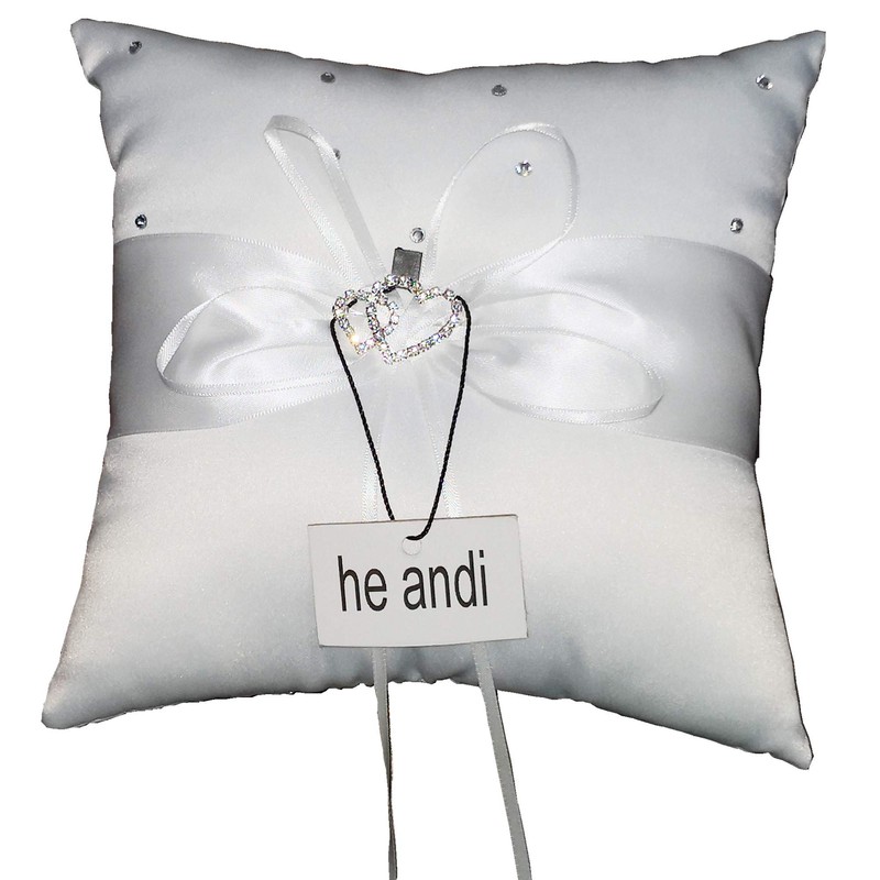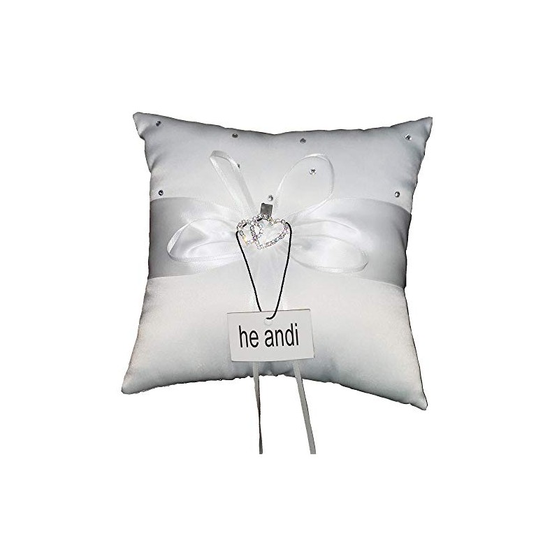 he andi 7.8" Satin Double Hearts Decoration Wedding Ring Bearer Pillow (White)